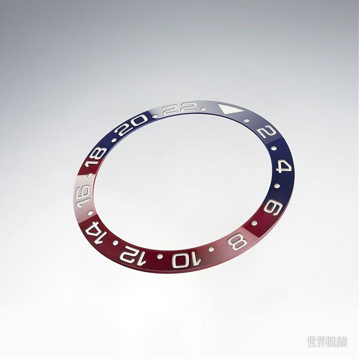 自从2005年系列改款採用陶瓷圈之后,碍于陶瓷本身的材料特性大家一度以为双色表圈从此算是绝跡了,想不到就在2013年劳力士意外地让我们见识到双色陶瓷的技术——蓝黑双色陶瓷表圈的GMT-MASTER II 116710BLNR,其中“BLNR”是法语中蓝色-黑色的意思,除了被称为蓝黑圈之外,也有人把它称为“蓝莓圈”。