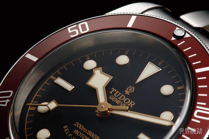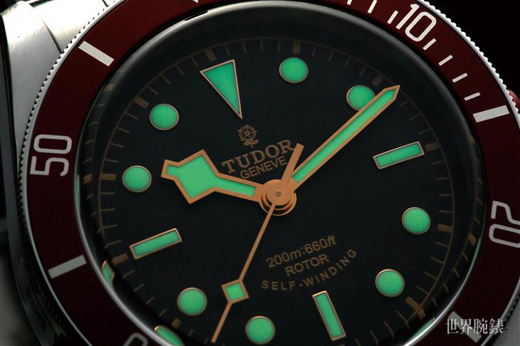 雪花形指针和大形的圆点时标都具有夜光效果,外在光源不足时的视读效果极佳;另外指针和时标均圈上玫瑰金色的外框,刻度与面盘字样也都是玫瑰金色,这些顏色都会因为时间流逝而产生老化的痕跡,这是TUDOR刻意採用的设计,以此增添表款本身的细致质感,并传达出浓厚的復古怀旧气息;另外表圈酒红设计则是前所未见,因为TUDOR所发行的潜水表都以黑色为主,因此此款表可说是独一无二,不仅集结了来自品牌歷史裡的诸多经典元素,同时也融入创新设计。