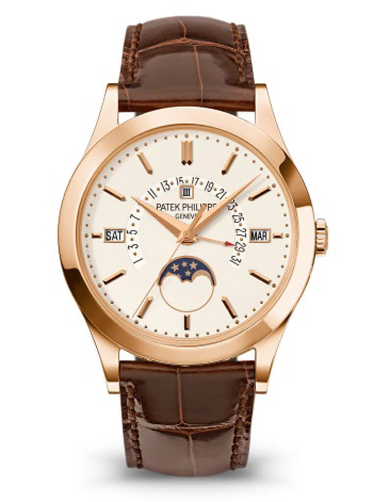 玫瑰金材质/324SQR自动上链机芯/时、分、秒、日期、星期、月份、闰年显示/万年历功能/蓝宝石水晶镜面、透明底盖/防水30米/表径39.5mm