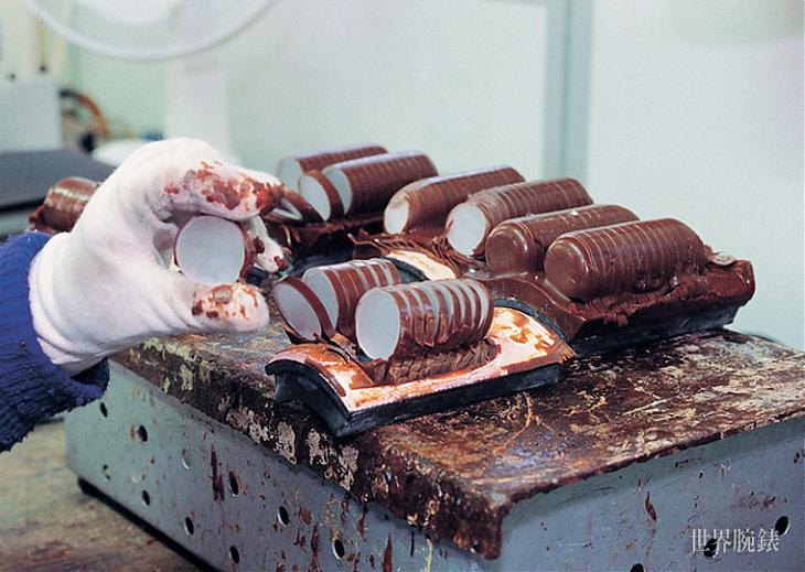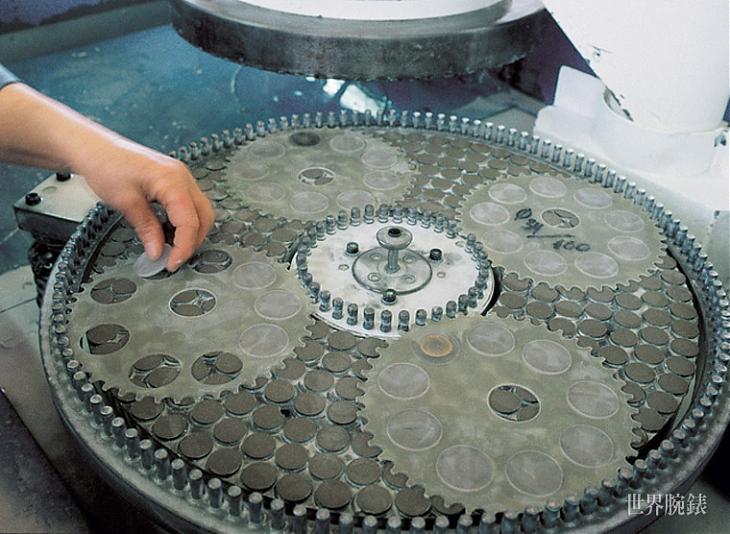 ▲初步切割成薄片的镜面还要再进行加工,拋磨至适合制作表镜的厚度。