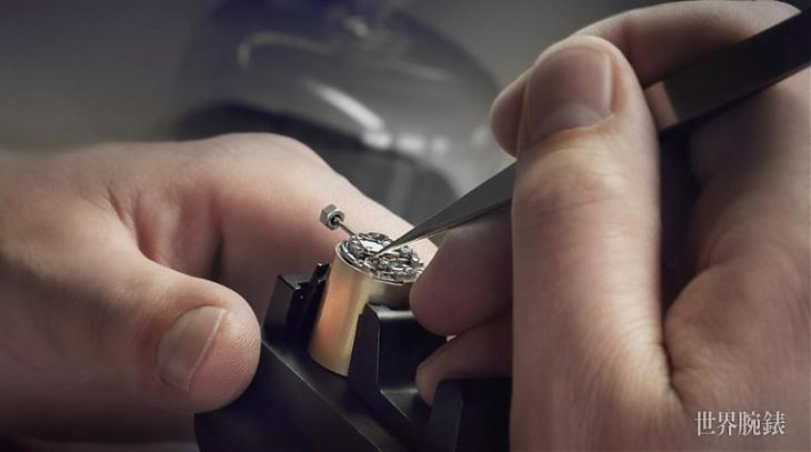 一旦安装好面盘并将所有指针准确定位在机芯上后,制表师将小心翼翼地把机芯装入表壳中,然后根据款式的不同,以固机圈进行安全固定。最后,则是安装表冠、防水垫圈以及计时码表款式用的按把等,以确保腕表展现良好的防水性能,以及防尘功能。在经过最后一次的肉眼检查后,制表师会旋紧表壳螺丝或牢固地锁紧表壳。