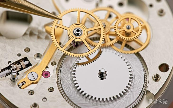 在无数极具挑战性的次组装结构中,擒纵系统与摆轮系统堪称是重中之重,也是机械手表的核心。这道工序不但需要安装擒纵桿、调整出口与马仔,也需要计算朗格自制游丝末端弧线的有效长度与折弯曲线。