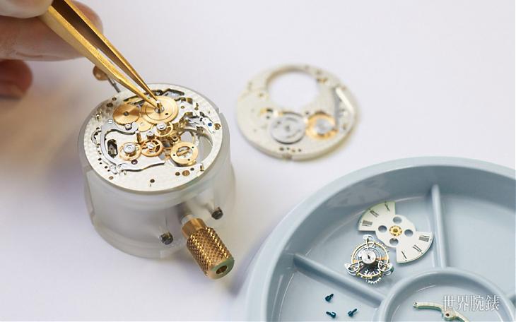 在第一次组装时,朗格的焦点放在机芯各复杂装置中的数百枚零件是否操作流畅。虽然这些部件的功能在这个阶段已经都确认无误了,但通过第一次组装后,所有机芯零件都会被再拆解和清洗一次。因为品牌认为即使在最谨慎的情况下,各部件还是有机会在调校过程中遭轻微刮花,又或机芯渗进细小灰尘。等到清理过后,众多零件会以传统技术进行装饰、雕刻和拋光。朗格旗下的每只手表都必须进行第二次组装,过程耗工费时,在表坛中不常看到表厂有这种要求。