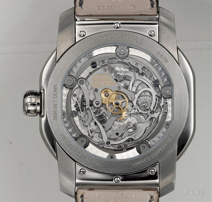 四锤四音簧的报时系统是DR&GG的镇店之宝,同样的Know-how二十年来陆续运用在大自鸣和单纯的叁问表上头,不时还会加上陀飞轮或是活动人偶成为大复杂功能,技术含量虽高,不过对熟悉他们家的人来说还不足以动其耳目,这款真正吸引人的卖点恐怕还是再加上天文台擒纵陀飞轮之后。