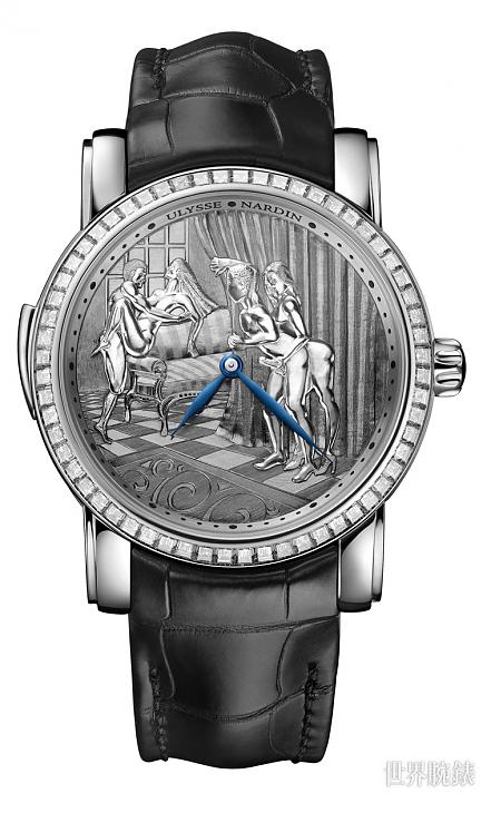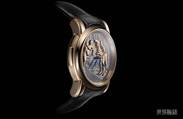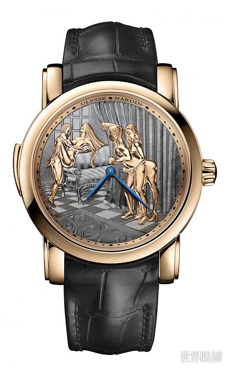 ▲雅典的动偶工艺再次结合叁问功能,并挑展禁忌的春宫场景,新作经典系列窥视者腕表将叁问功能美妙的报时乐音结合挑逗的动偶装置画面,铺陈出视听觉的大大享受。