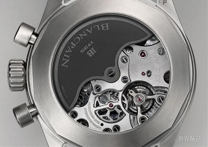 这款计时码表款有个特殊的地方在于它搭载的机芯。宝珀的计时机芯长年以来都是以F185、也就是FP1185为主力,不过这款却为这枚传奇机芯做了一次大幅度的升级。机芯的型号改为F385,规格上最重要的变更是将震频由21,600提升到36,000vph,另外游丝也採用了硅游丝;身为一代名机,歷来有不少品牌都对FP1185作过修改,积家的750系、宝格丽的Calibro 303、卡地亚的1904-CH MC都是着名的例子,而震频提升往往就是修改的重点,然而他们顶多是加到28,800vph,像这款一次衝到36,000vph的应该是头一遭,而这应该也是宝铂有意识地想要跟他厂做出区隔。