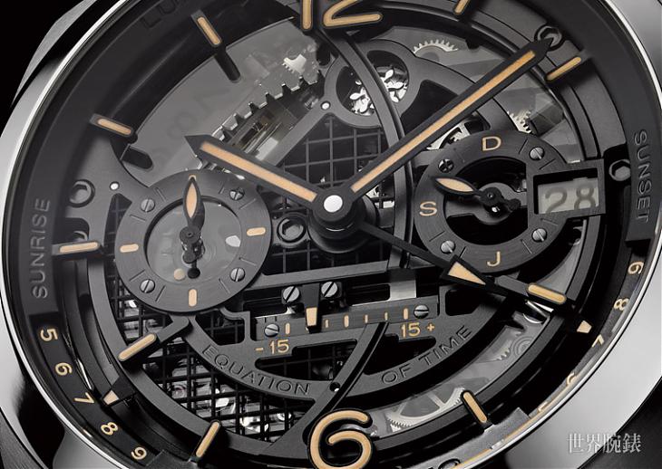 L'Astronomo Luminor 1950陀飞轮月相时间等式两地时间腕表技术特性: