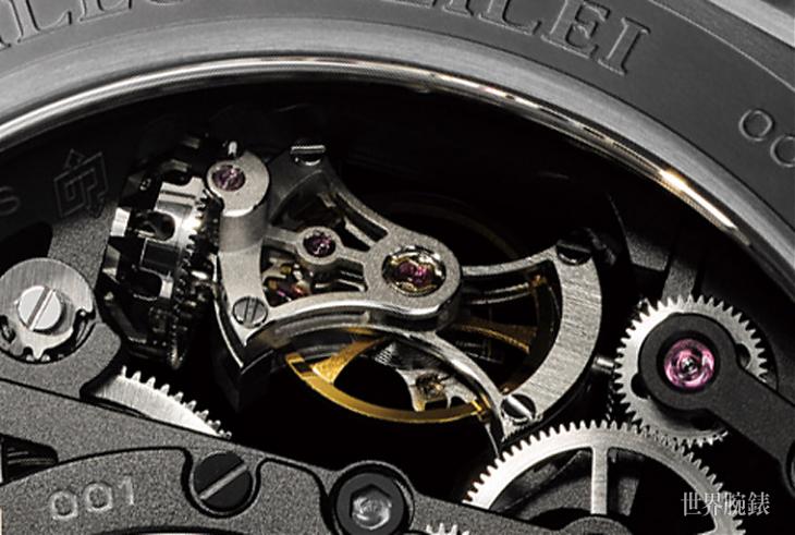 一般陀飞轮的轴心与其他机芯组件呈平行排列,而沛纳海P.2005系的陀飞轮机芯一律改採轴心与机芯垂直的少见设计,并将陀飞轮週期调快到30秒一圈。