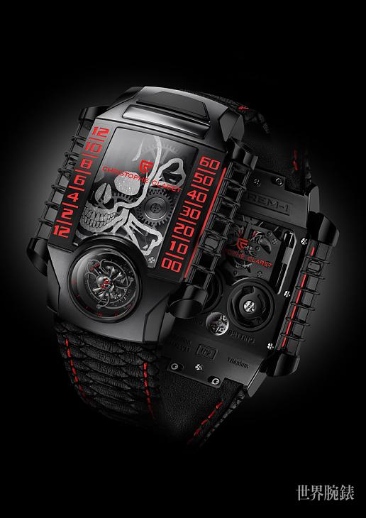 X-TREM-1腕表面世五年后,CHRISTOPHE CLARET与源自纽约的高级珠宝配饰StingHD携手再推出全球限量8只的创新机械腕表,充分彰显品牌在制表工艺的创意及StingHD的潮流触觉。表款拥有倾斜的浮动式陀飞轮及以磁力控制的飞返时分显示系统,惊世骇俗的外型展现前瞻的设计理念。全新X-TREM-1 – StingHD採用黑色PVD处理鈦金属表壳,陀飞轮框架上饰有骷髏图案,搭配魟鱼皮革或自订表带,反映佩戴者的生活品味。隐身于面盘的骷髏是设计的惊喜,当佩戴者向蓝宝石水晶表镜呼气,表镜便会显示骷髏图案,激进而前卫的设计风格彰显配戴者不随波逐流的个人色彩,是不折不扣的「反叛者」。