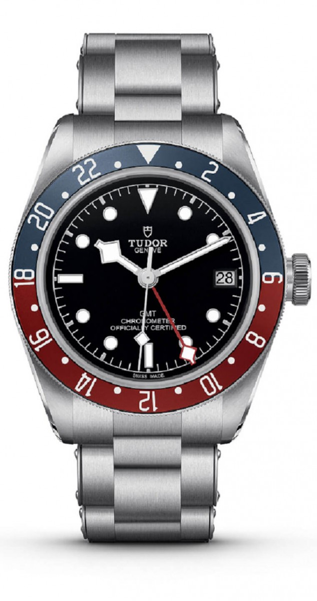 TUDOR于2018年时从经典Black Bay潜水表,延伸出融合多时区复杂功能的Black Bay GMT新系列,除了在地时间之外,还可显示其它两个时区的时间,并採用现代版Black Bay首见的酒红及深蓝双色旋转外圈,和装载新研发的原厂机芯,致敬传统也兼容当代工艺。