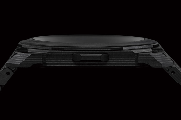 ▲表款外观全新採用一种名为碳薄层的热固性环氧树脂复合材质制成,除了视觉上带有叠层和不规则纹路之外,亦有极致轻量化的效果。