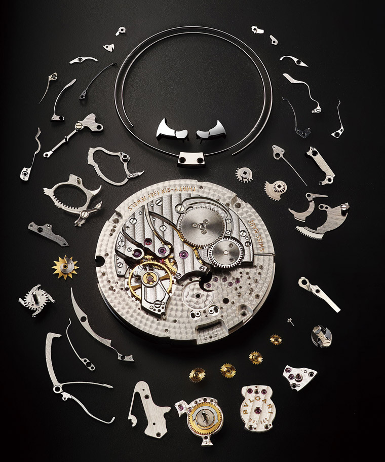 ▲BVL 362机芯由362枚零件组成,结构虽复杂但却能将厚度控制在3.12mm,一展宝格丽令人惊嘆的縝密设计与精湛工艺。