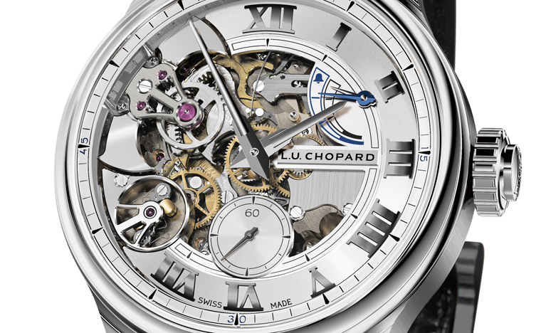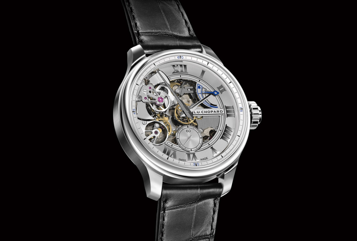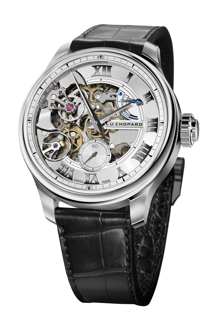 18K白金材质/L.U.C 08.01-L手动上链机芯/时、分、小秒显示/三问功能/动力储存显示/蓝宝石水晶镜面、透明底盖/表径42.5mm/限量20只