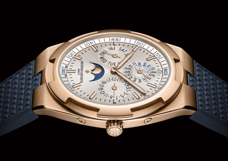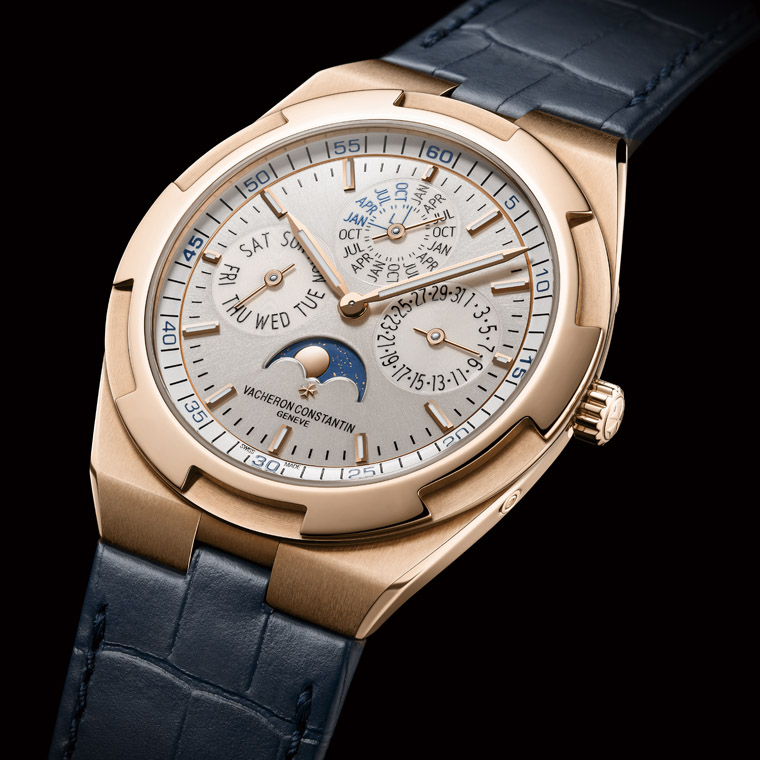 万年历功能出现在Overseas这种运动休閒款式中其实并没有那麼顺理成章,反而还更有向正装表靠拢的意味,因此江诗丹顿不论在先前款式或是2018年新款上,都还是坚持採用贵金属材质表壳,突显高规格的机芯内涵以及适用于正式场合的泛用性。新版Overseas在外型上最明显的变化在于灵感源自马耳它十字造型的表圈由上一代的八面精简为六面、表壳中层多加了一个环形分件看起来更富层次感,再来就是面盘上指针与时标造型的微调等,第一眼看起来虽然不会觉得最新一代的Overseas有翻天覆地式的变化,但仔细品嚐箇中的细节还是可以找出许多新旧异同的对比趣味。