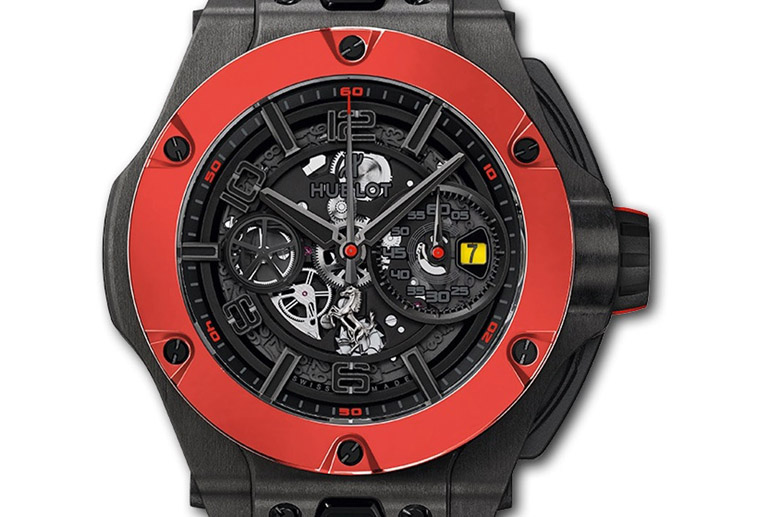 ▲HUBLOT与法拉利合作的表款Big Bang Ferrari Unico Carbon Red Ceramic,也配上一个红色陶瓷外圈。图片来源:HUBLOT