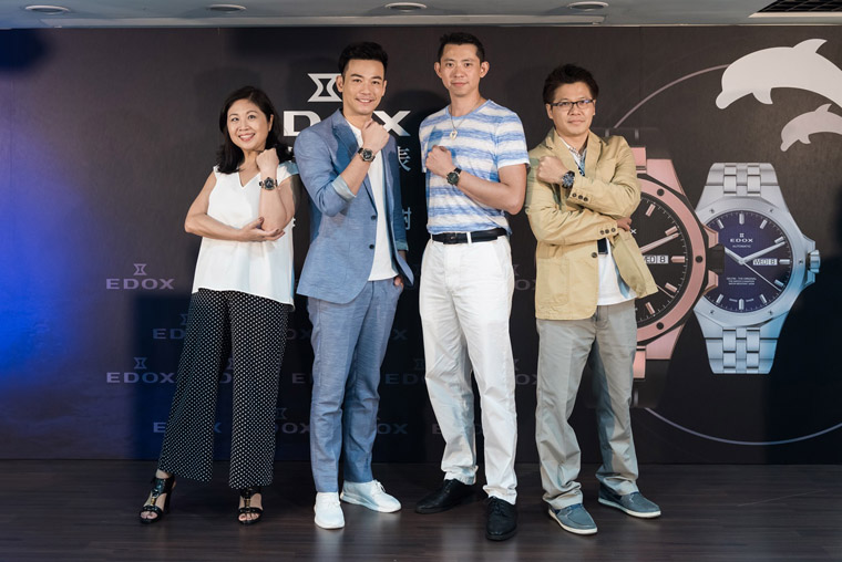 ▲EDOX举办「台湾海豚谢谢您」记者发表会,包括中华鲸豚协会秘书长、伊度表台湾总代理其驹有限公司总经理李丽玉小姐和公视英语新闻英语主播刘杰中都到场共襄盛举。