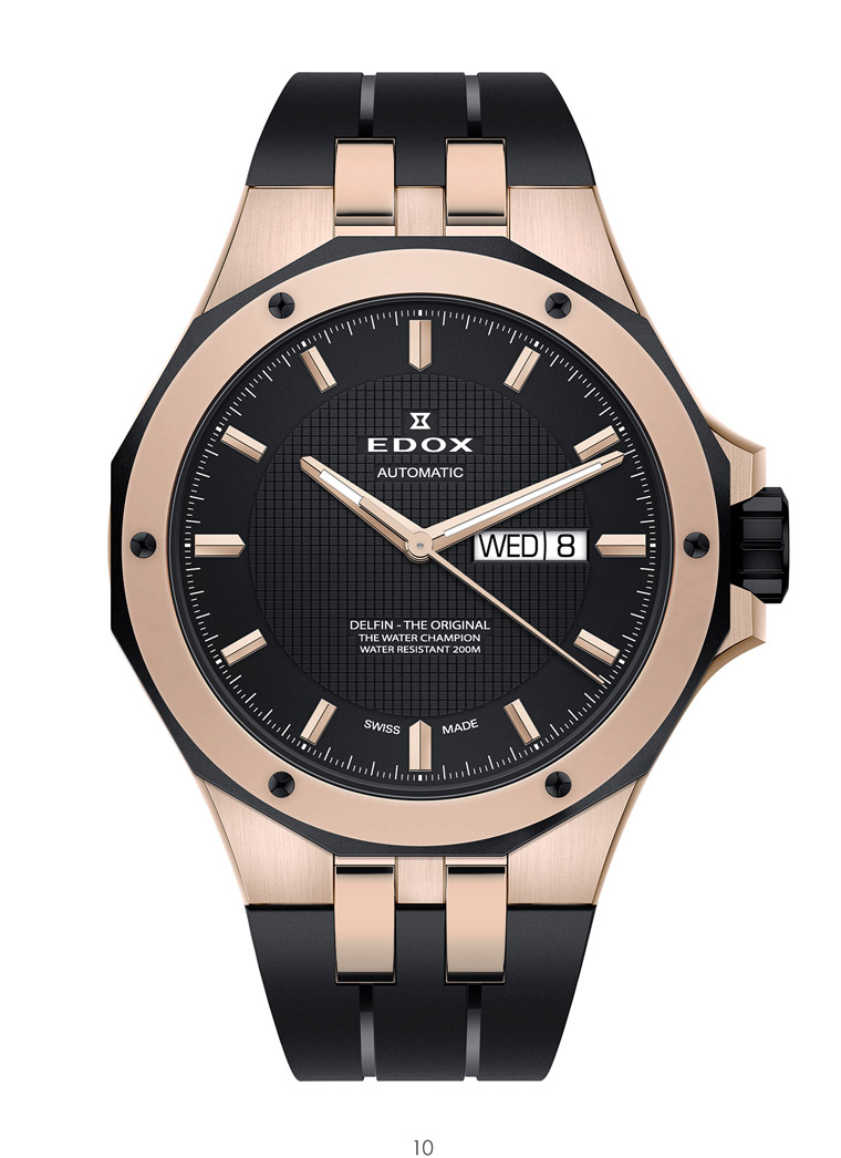 PVD玫瑰金材质/EDOX 88自动上链机芯/时、分、秒、日期、星期显示/蓝宝石水晶镜面/防水200米/表径43mm/参考价:NT$ 29,800
