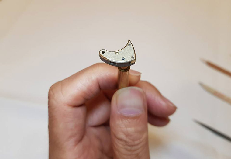 再高级的品牌,也绝大部份是採用手工辅以机具的拋磨,但独立制表品牌ROMAIN GAUTHIER则是全部以纯手工拋磨修饰,这次我很用心体验。即使一个小零件至少也要花15小时进行倒角拋磨与修饰,达到100分的结果,我终于了解为何一只基本款要卖台币200多万的道理。我玩机芯工艺,自然对机芯零件的拋磨最有感,为何一只陀飞轮表有订价数十万,也有数百万?除了品牌、材质、设计与结构等,最大的差别在于机芯的细致度,还有拋磨与倒角处理,因为瑞士工资很贵,订价高有理。ROMAIN GAUTHIER在瑞士真是异类,好龟毛,不过这也是制表师必需坚持的精神,就像日本的职人精神,做就是要做最好的,因为细节成就品质,品质创造价值。