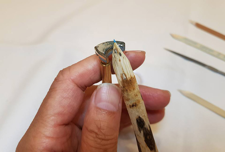▲以黄杨木做细部拋磨,有3种规格,从粗到细做出倒角。