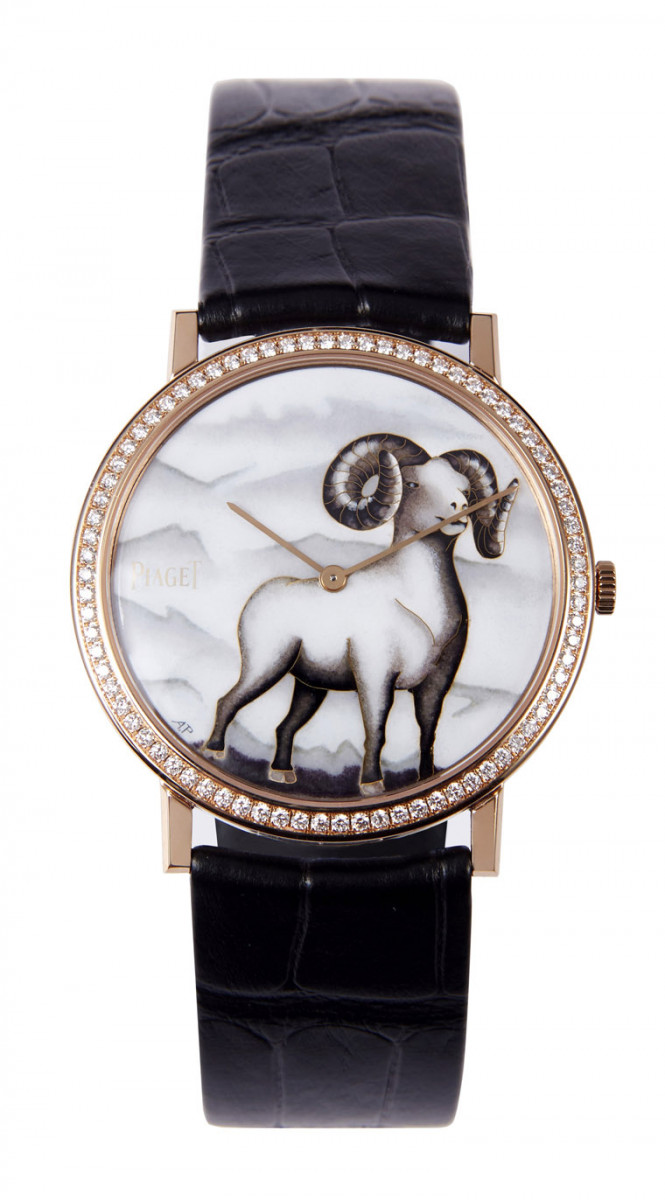 伯爵一直对手工艺术抱有热情,凭藉工艺大师和工匠的专业技艺,在诸多领域一直傲视群伦。伯爵将多门古老技艺运用于作品上,并与品牌的高级钟表制作传统和超凡创意融匯结合,将这些工艺发扬光大。Anita Porchet作为世界着名的独立珐琅彩绘艺术家,负责创作2015年的生肖系列腕表,运用灰色调制作掐丝珐琅表盘。这些柔和的灰色调凭藉深浅的区别,构成了这每年一度的系列的独特风格,无数细节和黑白组合将这些生肖描绘得栩栩如生。珐琅是一种玻璃混合氧化金属的材料,可以调出无尽的色彩和色调。这种技术古已有之,并且长期被用在珠宝和黄金饰品上。传统的珐琅制法沿用多年后,终于在18世纪的日内瓦得到发扬光大,被运用于装饰腕表表壳和表盘之上。伯爵特别钟情于这种独特的工艺所营造的色彩和持久光泽,因此在Art & Excellence系列中运用这项享负盛名手工艺。掐丝珐琅工艺需要经大明火 (Grand Feu) 工序处理,在摄氏820至850度的温度下烧制,使模型持久定型,保证珐琅的纯度。从以人手捣磨及调配珐琅釉料,到精心为金质表盘上色,然后放于窑内反覆烧制,每个工序都需要无比的专注力。 最后一道烧制工序必不可少,因为它可以让外观更加完美,并确保珐琅均匀散布于整个表面,提升成品的光泽度。灵感源自中国生肖,以Altiplano 38毫米表壳结合掐丝珐琅工艺制作,掐丝珐琅工艺让色彩的间隔更分明,确保不同的灰色调清晰可见。分隔区域 (cloisons) 以珐琅填充,令图案更为精细生动。面盘上的羊姿态昂扬,而富有层次感的灰色和柔和的山川背景又为画面添了几分平和感。