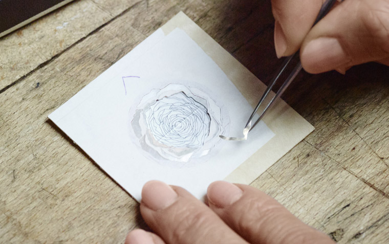 自古以来,一直用于木制品装饰上的细工镶嵌工艺均先淘空木材,再镶嵌其他材质的装饰物构成。细工镶嵌工艺于17及18世纪达至顶峰。当时,路易十四及十五世时期的美艺风格方兴未艾,家具工艺师André-Charles Boulle更是当中的领军人物。 自幼已着迷于艺术和手工艺的Rose Saneuil,就是于着名的Boulle School的家具课程中主修细工镶嵌艺术而获得启蒙。「上第一堂细工镶嵌工艺课时,我已肯定自己找到了往后要走的路。」这位充满热忱的工艺师,拥有「能实现任何想像的工艺造诣」。在玫瑰花香中细心考量花朵美态过后,她绘出单线草图,利用只有少数工艺师能掌握的复杂技术,俟次于木材上镂空构图中的每一个元素。此举在细小的面盘上进行,所需的技术更是无出其右。材质选择同样是千锤百链。淡粉红色的鸟眼枫树木板、呈淡红至粉红的梧桐木,加上纯白珍珠母贝,妆点Altiplano 38毫米珍珠母贝与木质细工镶嵌工艺腕表。以细腻色调而获选用的材质,俯首于工艺师的非凡技艺面前,经编排和切割成96块构图元素后,顺次排列并镶嵌于直径仅32毫米的面盘上。每片花瓣,以高达百分一毫米的准绳度,按材质 (淡粉红色的鸟眼枫树木板、呈淡红至粉红的梧桐木) 和色调,自外至内排列成构图自然流丽、形态栩栩如生的玫瑰。此枚Altiplano腕表的面盘需花 25小时雕琢,是一闋色彩与极致美学的颂歌。