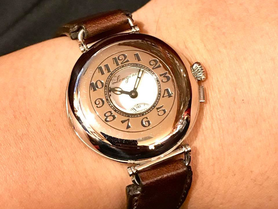 所谓的半猎表是指猎表(正面和背面有保护盖的怀表)中央位置开个透明视窗,不用打开表盖也能清楚看见时间的设计。此腕表是复刻于1915年LONGINES制作的腕表,其设计演变之初,原因在于16世纪之时贵族喜爱打猎,带出去的表容易碰撞刮伤,为了防止贵族的爱表受损,制表师特别设计出表盖,以防止表面因为打猎而刮伤。而到了十七世纪之时,为了看时间而必须要常常的打开表盖,制表师索性将表壳中央开个小视窗,进而衍生出所谓的半猎表。我们可以发现到腕表设计之初,便是把怀表体积缩小,想办法佩戴在手腕上,而半猎表不仅能保护镜面避免碰撞刮伤,又能让人直接阅读时间,而且和怀表相同,时时能欣赏机芯,真是方便又贴心的设计。