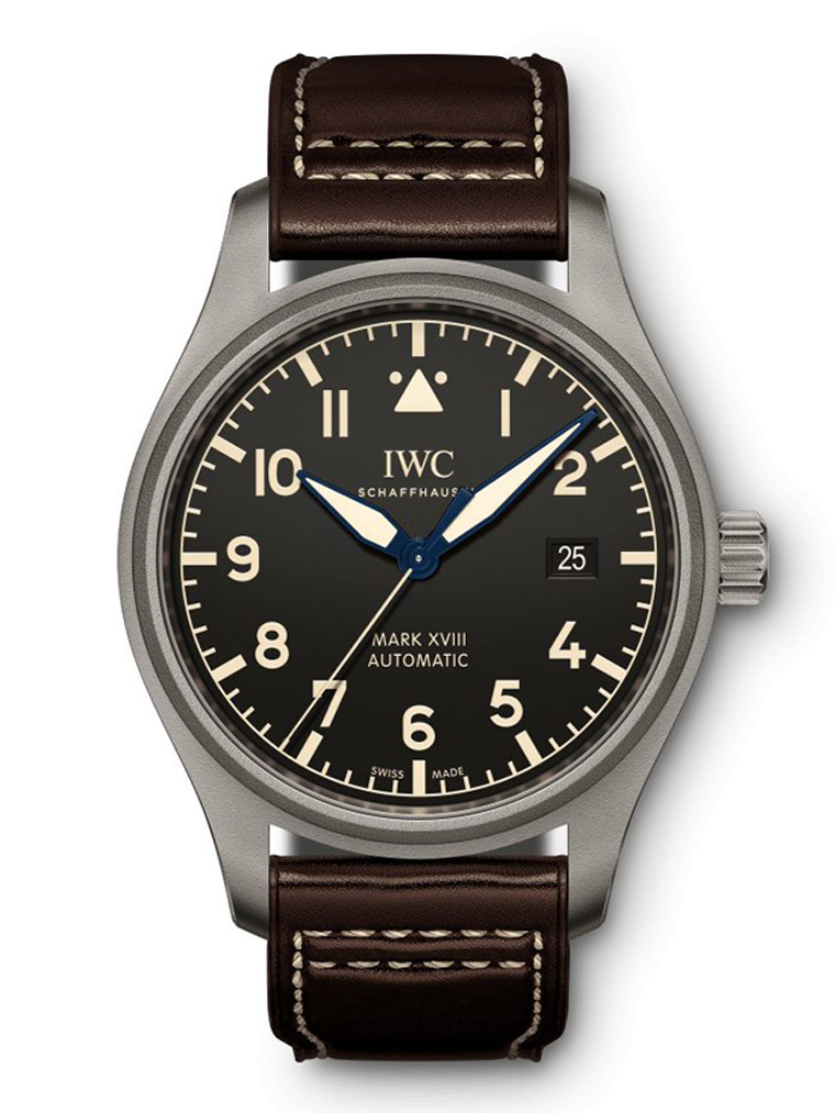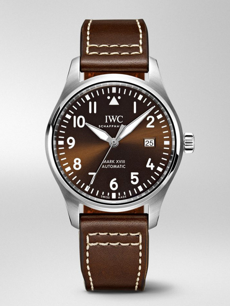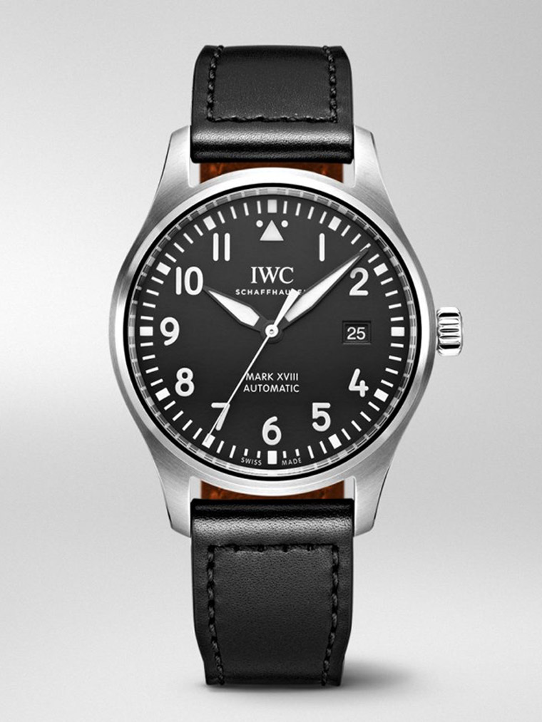 IWC的马克18飞行员腕表外形延续了标志性的马克11腕表的设计传统,并将典型飞行员腕表的功能和设计精简至最为核心的要素。