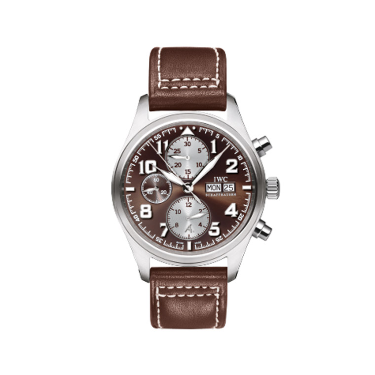 飞行员追针计时码表(3711)于1992年在巴塞尔钟表展上亮相。这是IWC首款自动追针计时码表,搭载79230自动机芯。