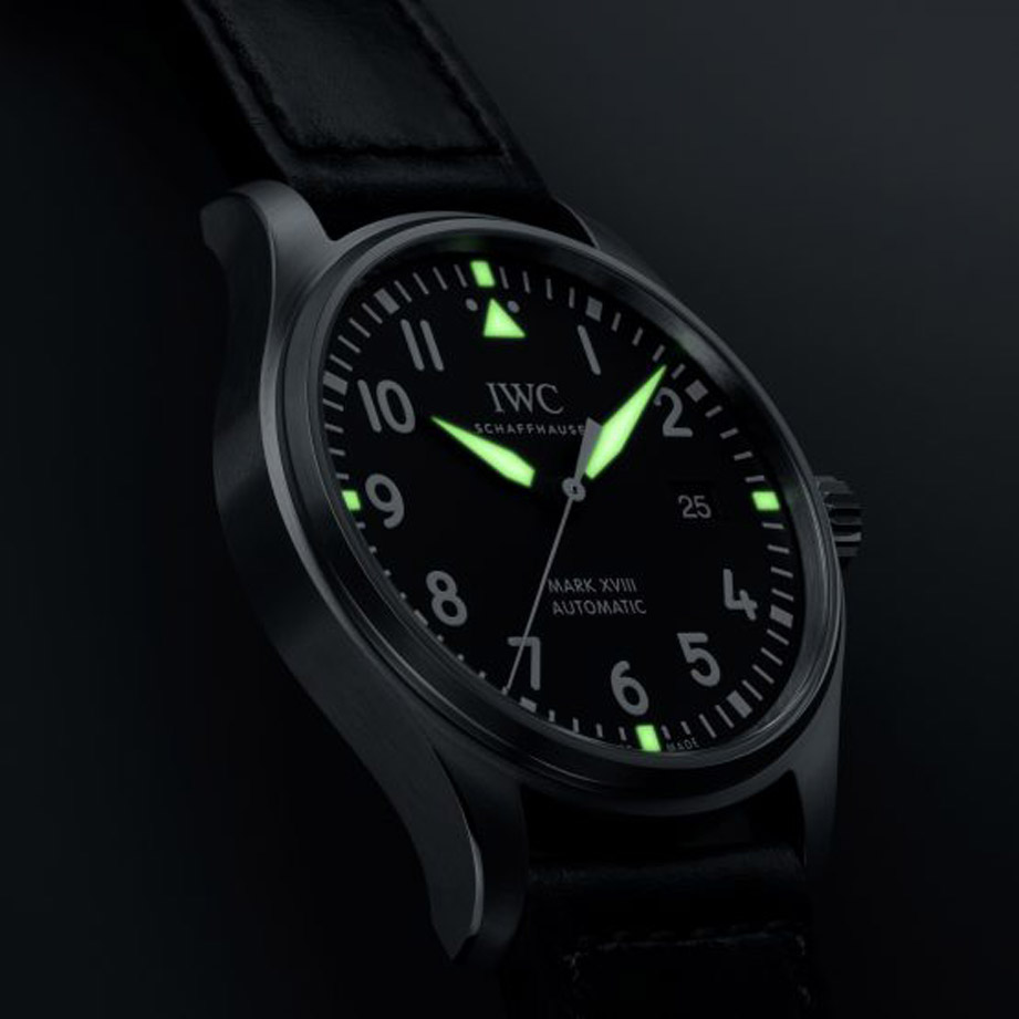 驾驶舱仪器的黑色面盘与对比鲜明的夜光显示对经典飞行员腕表的驾驶舱设计产生了深厚的影响,并一直持续至今。雾面黑色面盘精简至核心元素,醒目的夜光指针与大型夜光数字映入眼帘,特徵鲜明。