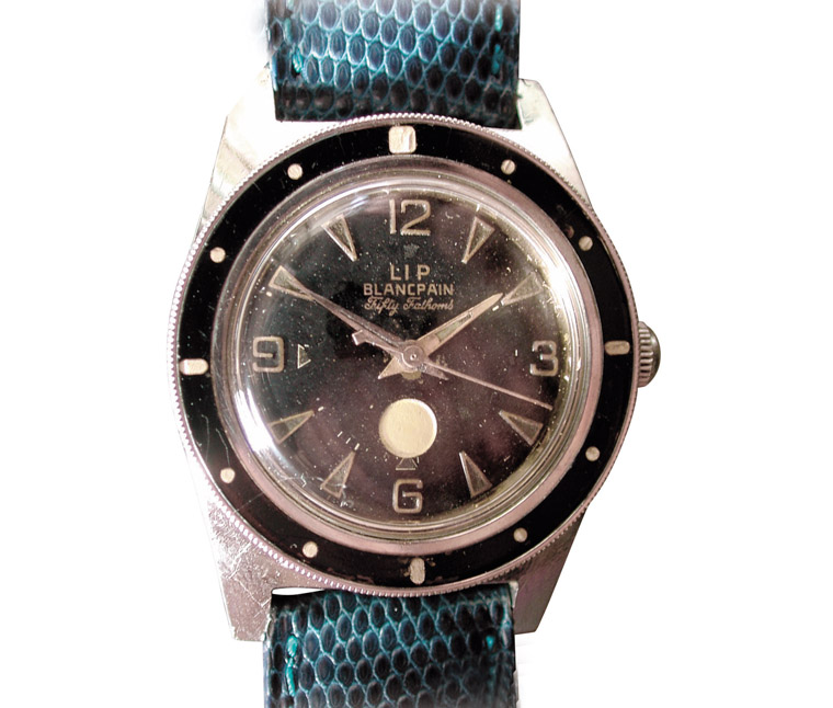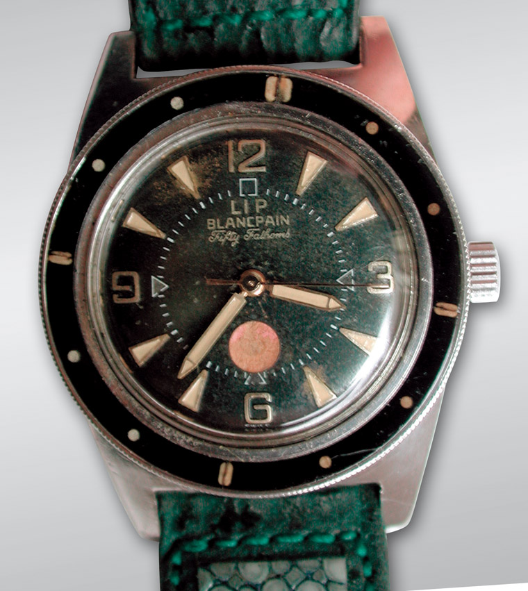 和第一只五十噚的外型看来相去不远,但仔细看12点钟位置有一"LIP"的字样,LIP是法国海军当时所找的第一家潜水表供应商,起初其不相信潜水表具有发展潜力,然而宝珀成为法国海军的理想人选后,LIP在其店内开始销售面盘上刻有"LIP"的五十噚特别版。