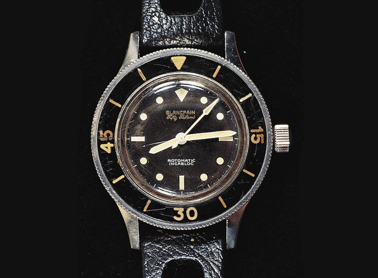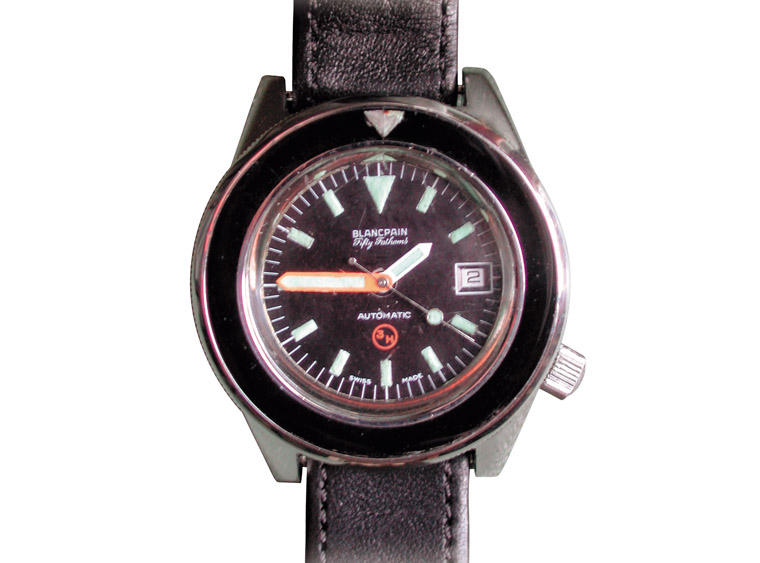 第一只五十噚腕表在时值宝珀执行长的Jean-Jacques Fiechter手上应运而生,身为潜水好手的他想出了未来潜水表的基本功能与显时机构,刻意挖空的表带更是考虑到潜水者的手腕舒适感,然而这项设计在未来所发行的五十噚表款上已消失得杳然无踪。