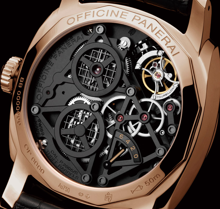 PAM00559/18K玫瑰金材质/P.2005/S手动上链机芯/时、分、小秒显示/陀飞轮装置/两地时间显示/日夜显示/表背动力储存显示/蓝宝石水晶镜面、透明底盖/防水50米/表径48mm/限量30只/参考价:NT$ 4,690,000