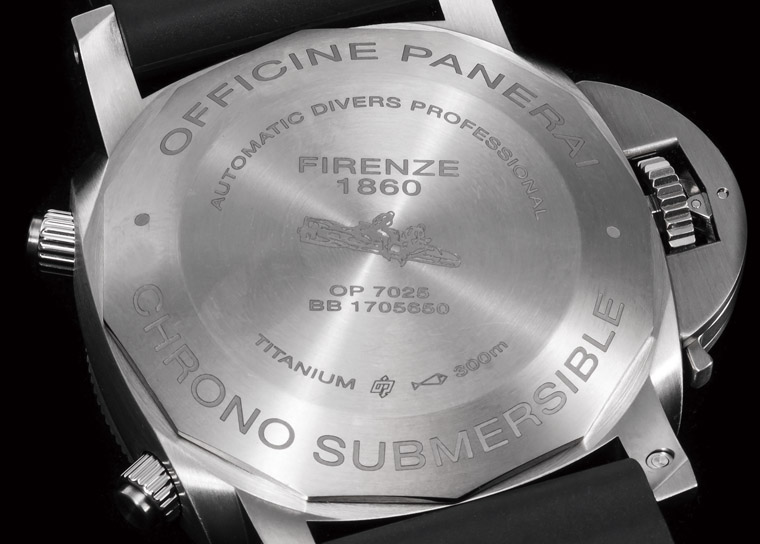 ▲腕表背面与PAM00616相同,刻有沛纳海的"Florence 1860"字样象徵品牌创立年份与发源地,此外还刻有代表品牌的慢速鱼雷图案。