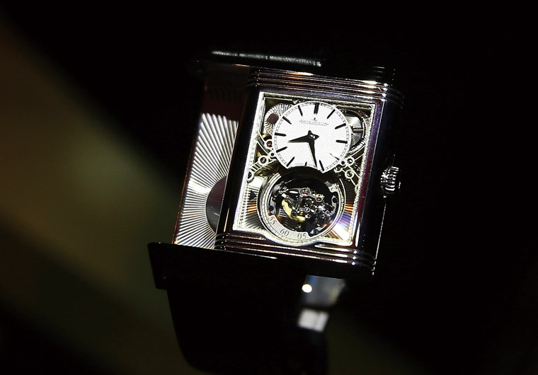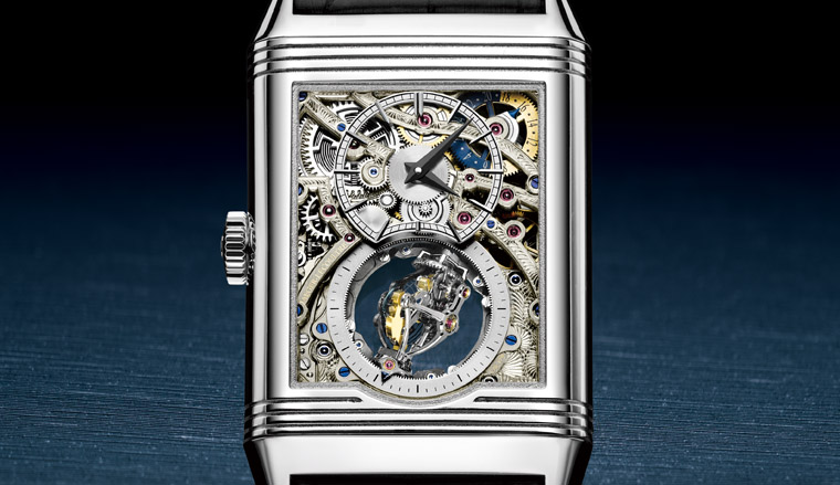 ▲翻至背面的Reverso Tribute Gyrotourbillon面盘格局大致与正面相去不远,不过为突显双面的不同功能性,积家特别採用镂空雕花处理、并以具有阿拉伯数字刻度的日夜显示强调背面为第二地时间显示。