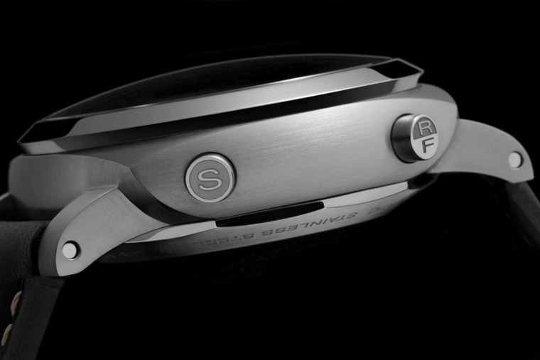▲飞返功能藉由8点钟方位的一个按把控制,它可以瞬间将计时指针拨回至零的位置,同时立刻重新开始运转。