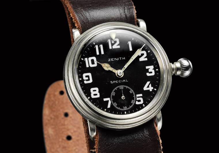 1910年开始,ZENITH即为英国军队制作高度计,1913年首创环游欧洲纪录的法国飞行员Marcel Brindejonc des Moulinais亦是选择ZENITH腕表伴随左右。二次大战初期,ZENITH开始为法国空军制作腕表,计算炸弹落下所需时间的计时码表,同时法国大部份飞机皆搭载品牌发展的Type 20飞行员腕表做为指定机舱仪器,当中包括此时法国空军训练飞机与是Air Bleu邮递公司国际运输线的着名机型——Caudron Simoun C.635型飞机。此外义大利军方亦委託ZENITH制作腕表,由历史悠久的义大利空军供应商A. Cairelli发行,2,500只限量发行如今也成了收藏逸品。