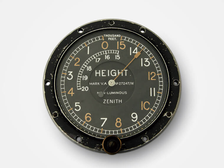 ▲从1910年代开始,ZENITH即成为英国空军供应商。此为高度计,透过大气压力的变化来判断飞机所在高度。