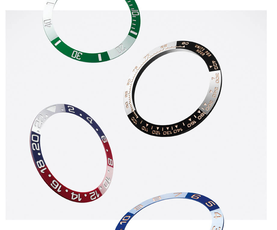 2010年,绿色陶瓷初次见于Submariner Date手表。2013年,劳力士呈献首款半蓝半黑的创新双色陶质字 圈,并装配在GMT-Master II手表上。同一年,品牌在Cosmograph Daytona配置首款一体成形栗棕色陶质外圈。2014年,GMT-Master II手表配备红蓝双色陶质字圈,这是一种技术上的再突破。品牌的最新研发成果是棕黑双色陶瓷,配置于2018年推出的两款GMT-Master II腕表上。其中一款以18ct永恒玫瑰金制成,另一款则为永恒玫瑰金钢款式。