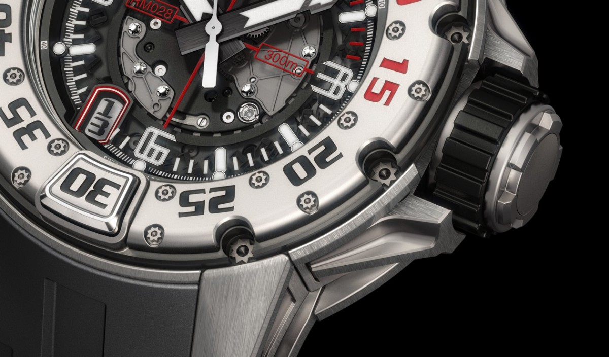 两只腕表复杂且专利特殊功能势必配以透过坚硬的表壳形成全面保护。RM 028腕表的弧形三件体表壳设计採用了扭力螺丝,以便将它们一颗一颗、精确地拧在表壳外周。除了该表壳的扭力螺丝体系之外,还设计有螺纹表冠构造。所有款式均配有钛合金表耳,以及RICHARD MILLE特制的螺纹式橡胶潜水表带,具有极高的安全性得以展现专业潜水表的规格。
