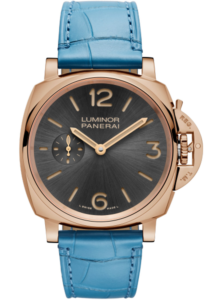 ▲Luminor Due的外形经沛纳海巧妙的搭配,所以就造型而言不仅时尚又美型,充满活力的浅蓝色鱷鱼表带也成为PAM00677的设计,有些许进攻年轻化市场的意味。