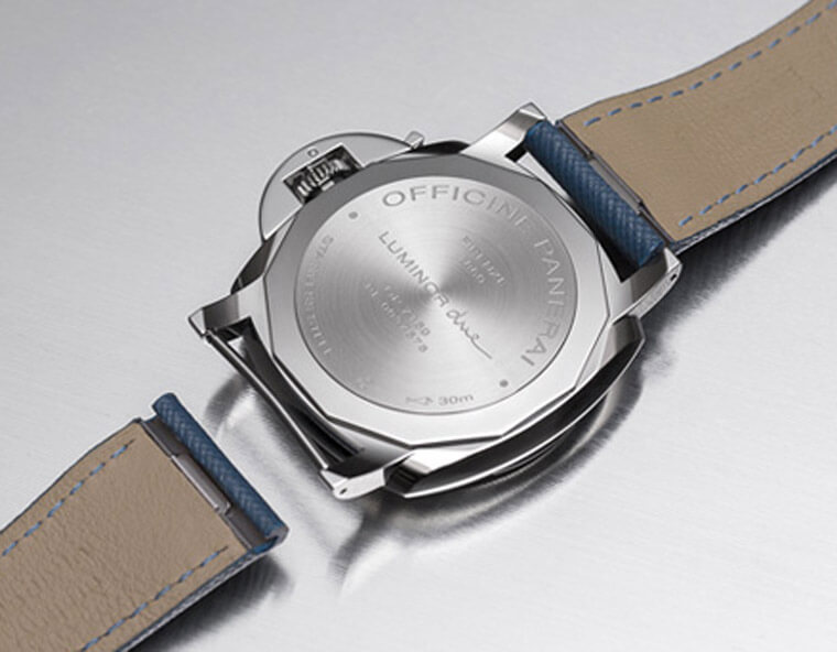 沛纳海新款的Luminor Due配件包括创新的快速装卸系统表带,这是一种沛纳海独家研创的机制。标榜无须使用辅助工具即可更换表带——佩戴者只须按压表带背面靠近表壳处的按钮,便可将表带从表壳拆下,同样的,安装表带也同样如此简便。