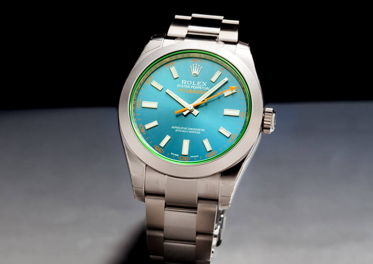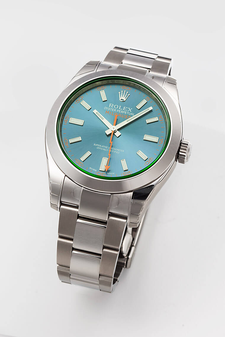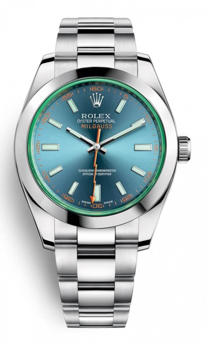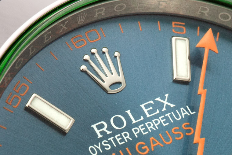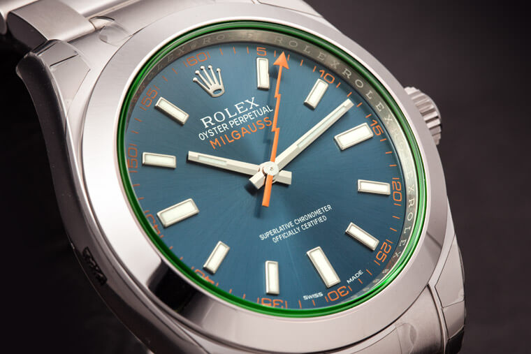 ▲ Milgauss设计的独特之处,就是从侧面看玻璃边缘会有一道绿色散出,也因此被称为「绿玻璃」。