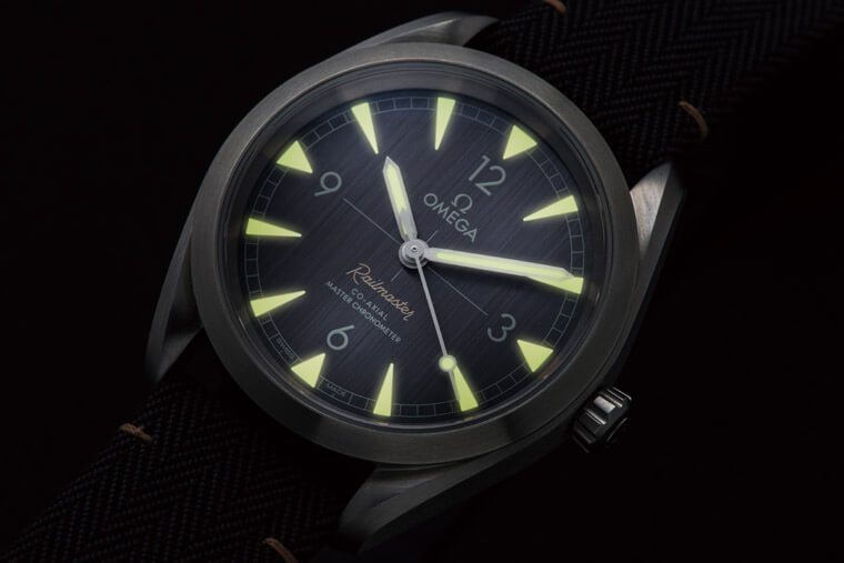 ▲瘦长的大三角形时标算是Railmaster的特徵之一,而这点在夜光下尤其明显。表款在对复古这个议题的处理比较接近新古典,将旧元素用新方法来呈现,跟完全复刻的三部曲版有着明确的区隔。