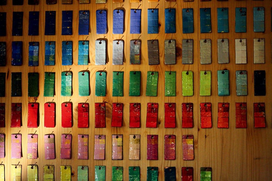 ▲掐丝勾勒出图案线条后的面盘有了一个分明的形貌轮廓,此时工艺师便要在各个区块中填满预先设计好的釉料,利用各区块的色系组合拼缀出画面的生动性。