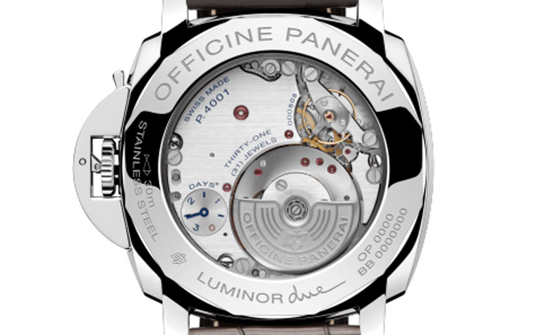 ▲PAM00943搭载品牌的微型自动盘机芯P.4001,其有助于降低表壳厚度,身着正式服装也不会看起来沉重突兀。