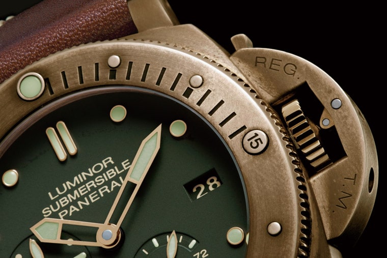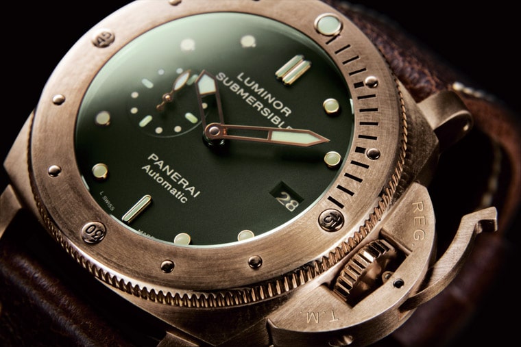 青铜是铜与另一种金属的合金,而结合的通常为锡材质,另外更可加入其他的化学元素以达至特定性能。沛纳海为全新Luminor Submersible表壳所选用的青铜属CuSn8,是铜与纯态锡的合金,具有极佳的抗海水和大气因素腐蚀的能力。除具有极高的结构强度外,这种材质还保留了原材料柔和的色调;而随着岁月的流逝,其表面形成的绿锈色泽更营造出一种古朴的感觉。绿绣色泽是青铜与外在因素(空气、水份、热度及日常磨损)产生反应所形成;这样并不会改变这种材质的属性,但这些岁月的痕跡反而令每只腕表显得独一无二、富有个性。2011年的第一代青铜腕表PAM382现在都已开始呈现绚丽的色彩,无疑PAM507也会走同样的道路,PANERAI其实是迎合了收藏家的复古情调,毕竟几十年前褪色面盘镭铜绿夜光的古董表稀有,而青铜表壳只要寥寥数月就会开始体现岁月的痕跡。