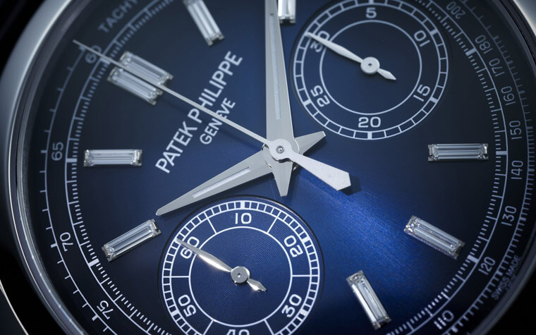 先前5170整只表从面盘到表壳都忠实重现PP经典的Ref. 130计时码表;棒状+罗马字或是全宝璣数字的时标都是过去130的古董表中曾经出现过的样式——事实上在历代130款式中还有更多变化,如果品牌有意的话可以再出好几次改款,果不其然发展到这款身上,时标又全面改成举行镶钻模式。原本的脉搏计在表面上佔有不小的比例,意外的是2015年那次改款拿掉了以后面盘并没有因此而显得空旷,这应该还是要拜子面盘和时标的设计成功地平均了整个表面的重心,让表款的面盘得以维持和谐,不过2017年这款推出时,PP又新增了流速计刻度,强化了计时功能的专业感。
