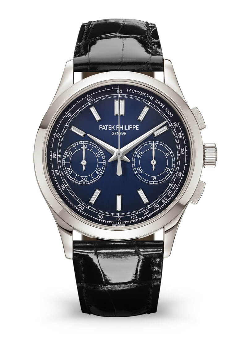 百达翡丽旗下的计时名作从2010年首发第一只黄金材质的白面Ref. 5170J至今,目前已有白金材质的Ref. 5170G(黑、白面)、玫瑰金材质的Ref. 5170R(黑、白面),2017年再度迎来新成员蓝面盘的5170P,形成越来越壮观的5170家族。