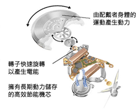 想要在手表内利用动能转化成电能并非一件简单的事,不然SEIKO也不会花了18年才开发成功。箇中的关键在于SEIKO开创出利用磁浮方式将转子悬空、使转子在零磨擦力的状态下旋转的方法,接着还会透过传动系统的设计将其转速增至原来的100倍,达到每分钟1至10万次,这速度比起赛车的引擎还要高出数倍,也因此它能比机械表更快速累积动能,而且动能也消耗得更慢,因此提到表坛的省能发明,SEIKO的Kinetic人动电能机芯绝对会是其中最知名的案例。