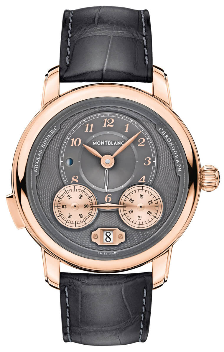▲万宝龙的Star Legacy Nicolas Rieussec计时码表推出改款新作,除了新增贵金属材质,包括面盘配色和表带顏色都全面改成灰色系,散发出较为现代的个性。